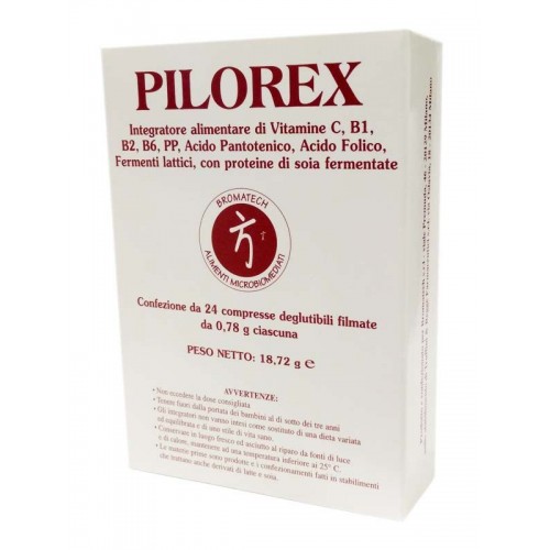 L'integratore alimentare Pilorex, a base vegetale, contiene alcuni polipeptidi, una forma di proteine di soia "semplificate" tramite l'azione di fermentazione di uno specifico ceppo di Lactobacillus Bulgaricus, molto utili. Pilorex contiene inoltre il fermento lattico ad azione fisiologica Lactobacillus Acidophilus, dotato di vitalità e di grande resistenza agli acidi per favorire il riequilibrio della flora intestinale. La presenza delle vitamine PP e B aiuta al fisiologico mantenimento in salute delle mucose.